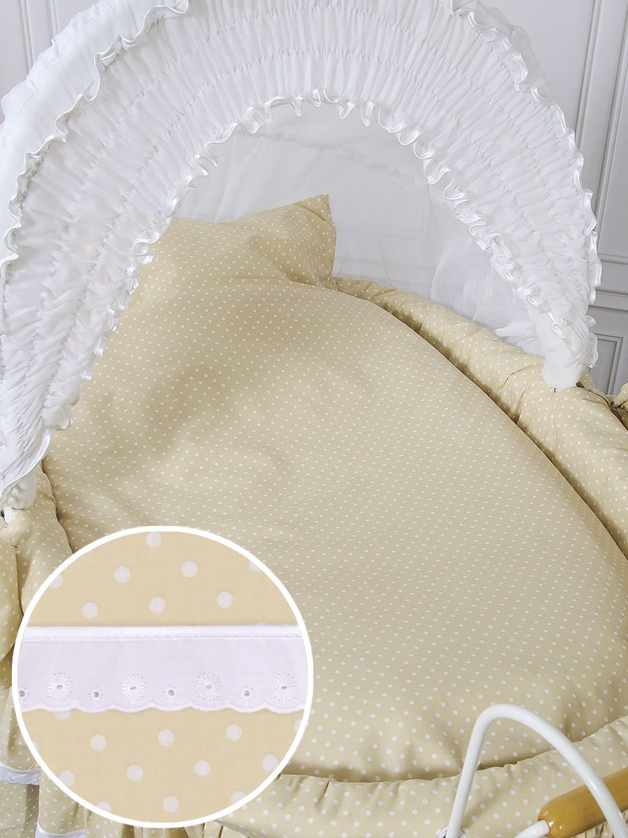 basket cover with sewn-in soft filling, hood cover, pillow and cover (filling: outer fabric 100% Cotton, padding: 100% Polyester) duvet cover and quilt cover, all from 100 % cottonfabrics