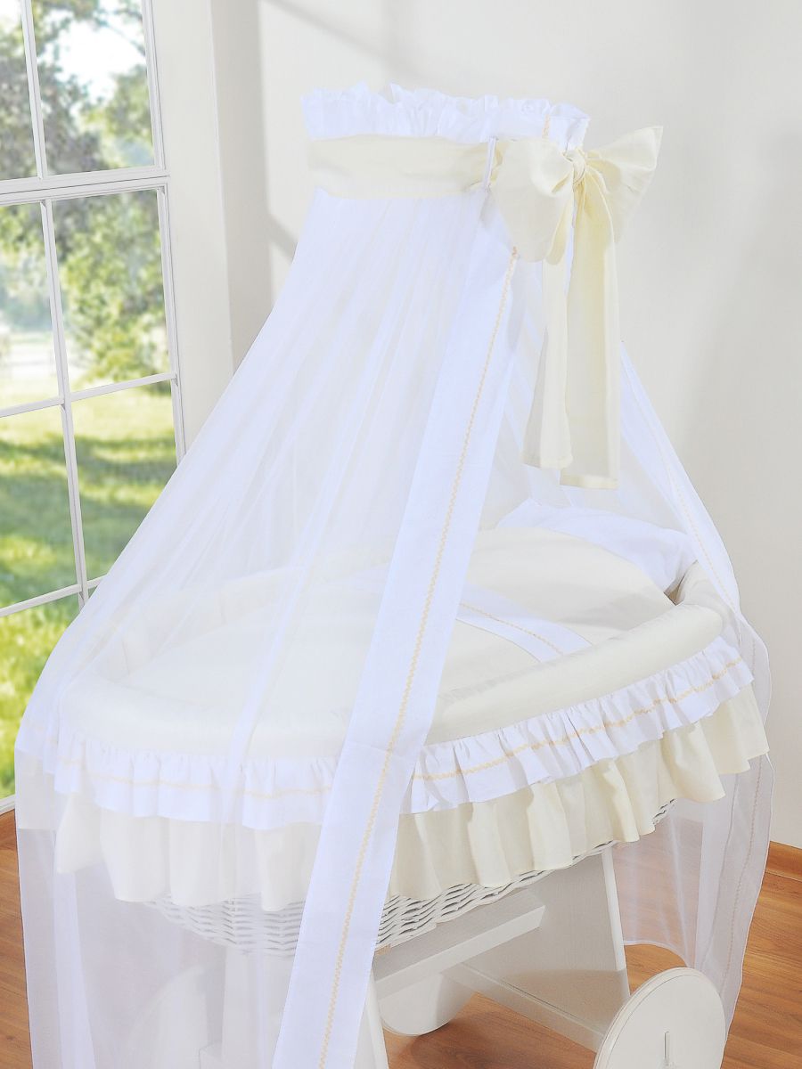 The wicker Moses basket can be used for children up to 6–9 months old (depending on the child’s individual size) and a maximum weight of 15 kg.