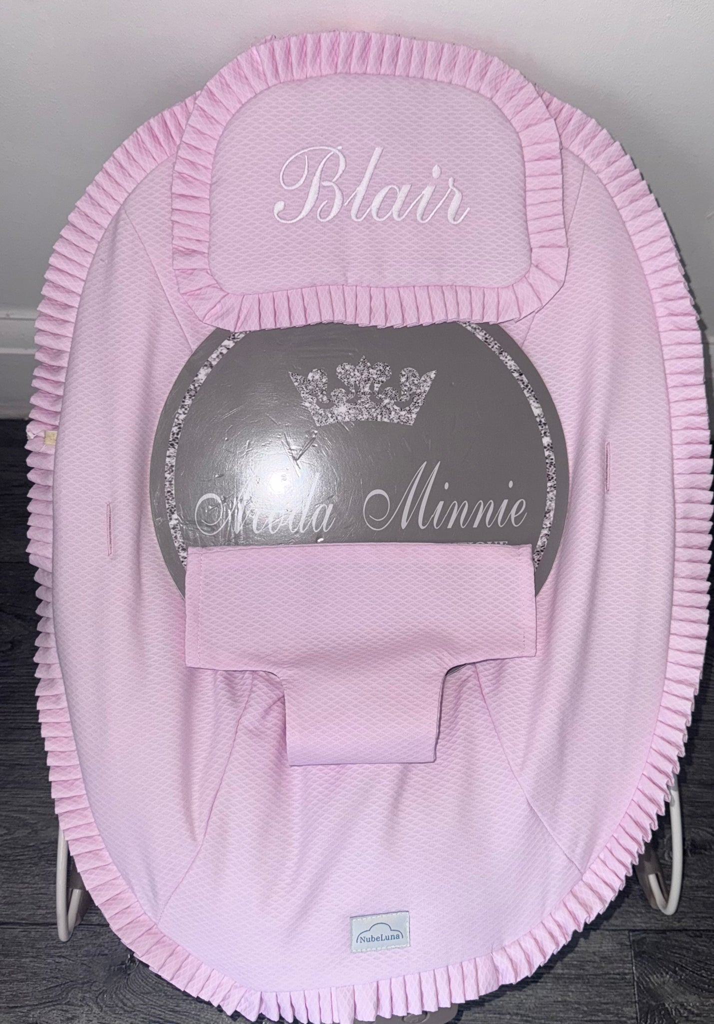 Bouncers can be personalised for extra and matching bows can be purchased too for extra